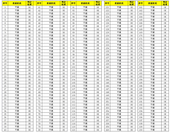 由以上觀察結果可看出,在預設130℃,48S的參數(shù)下可有效烘乾。烘乾過程中未出現(xiàn)煙霧等異常狀況,未出現(xiàn)有明顯異味的現(xiàn)象;