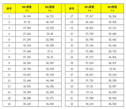 PY-705印刷厚度CPK為(UV1 1.58;UV2 1.45) ,表現(xiàn)較為穩(wěn)定;