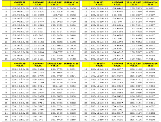 測試結果:PY-705印刷烘烤前后尺寸相差不大 ,且均未超過網(wǎng)版尺寸,尺寸較穩(wěn)定;