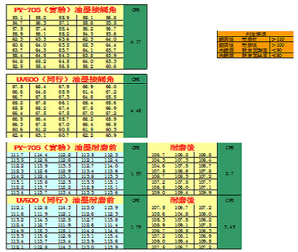 使用PY-705印刷后產(chǎn)品水滴角均在標準范圍內(nèi),CPK>1.33,表現(xiàn)較穩(wěn)定
